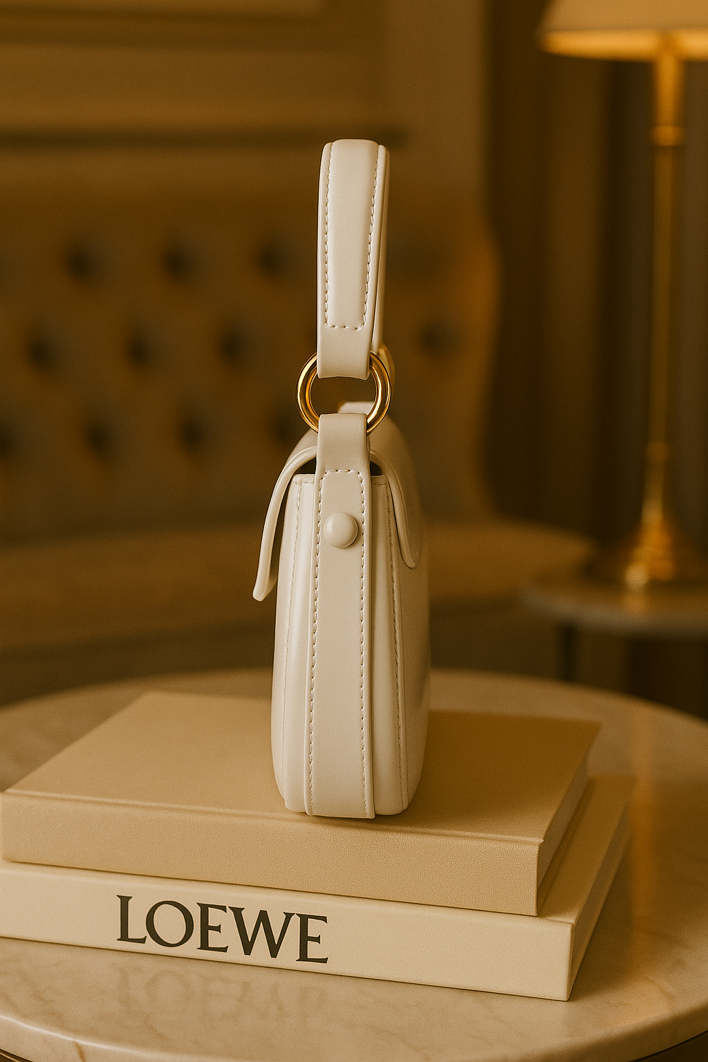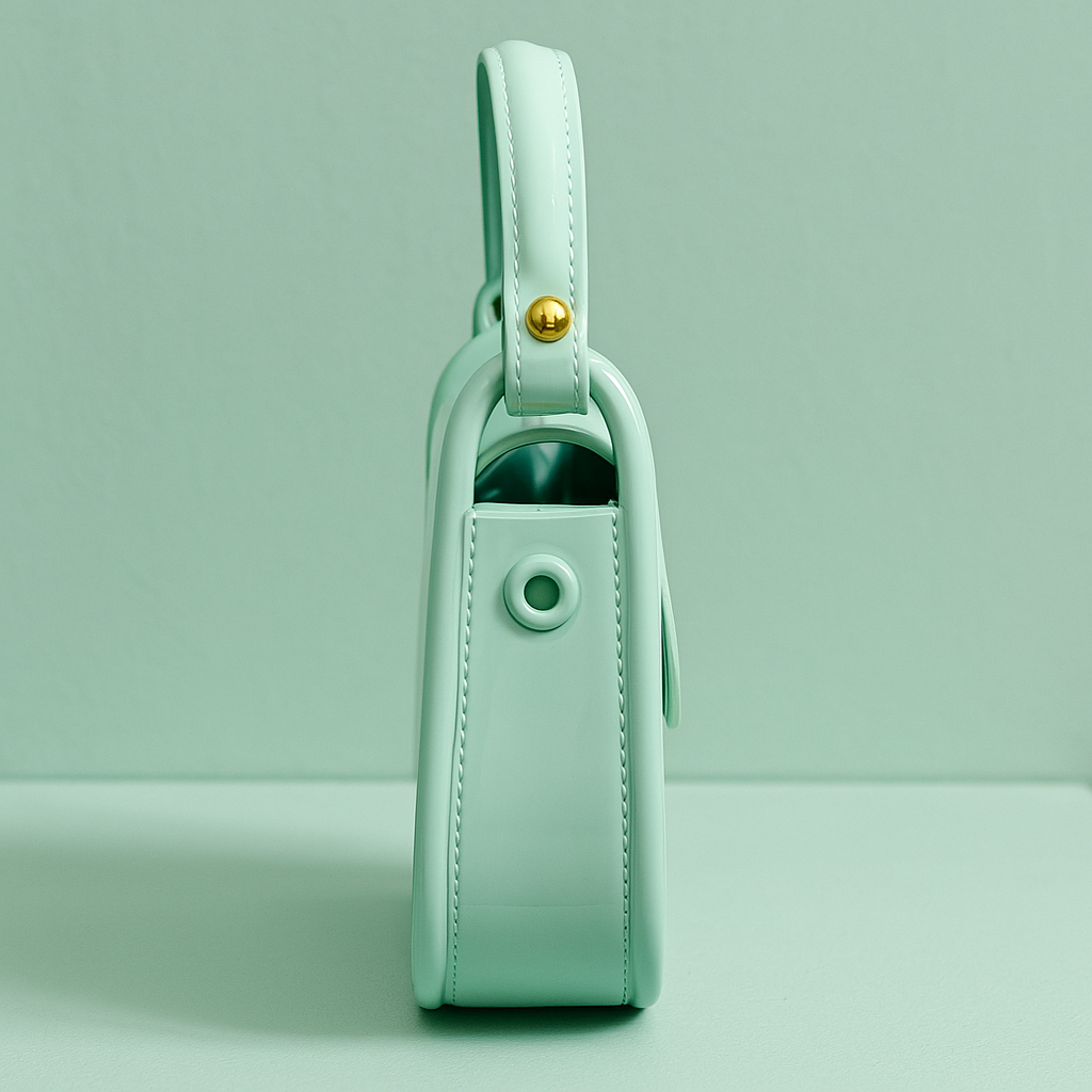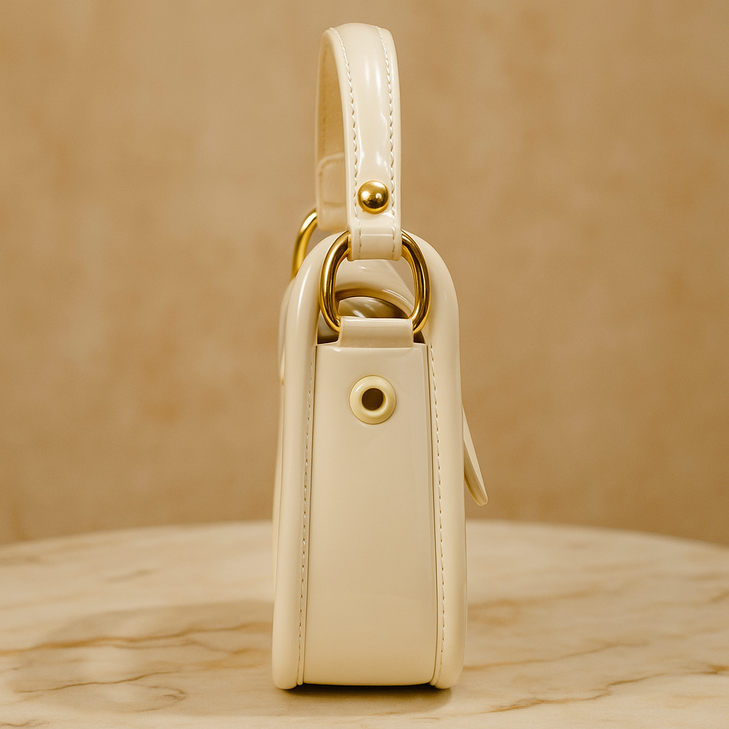 Opt for sophistication with our beige patent mini handbag. Minimalist design that works with any outfit.